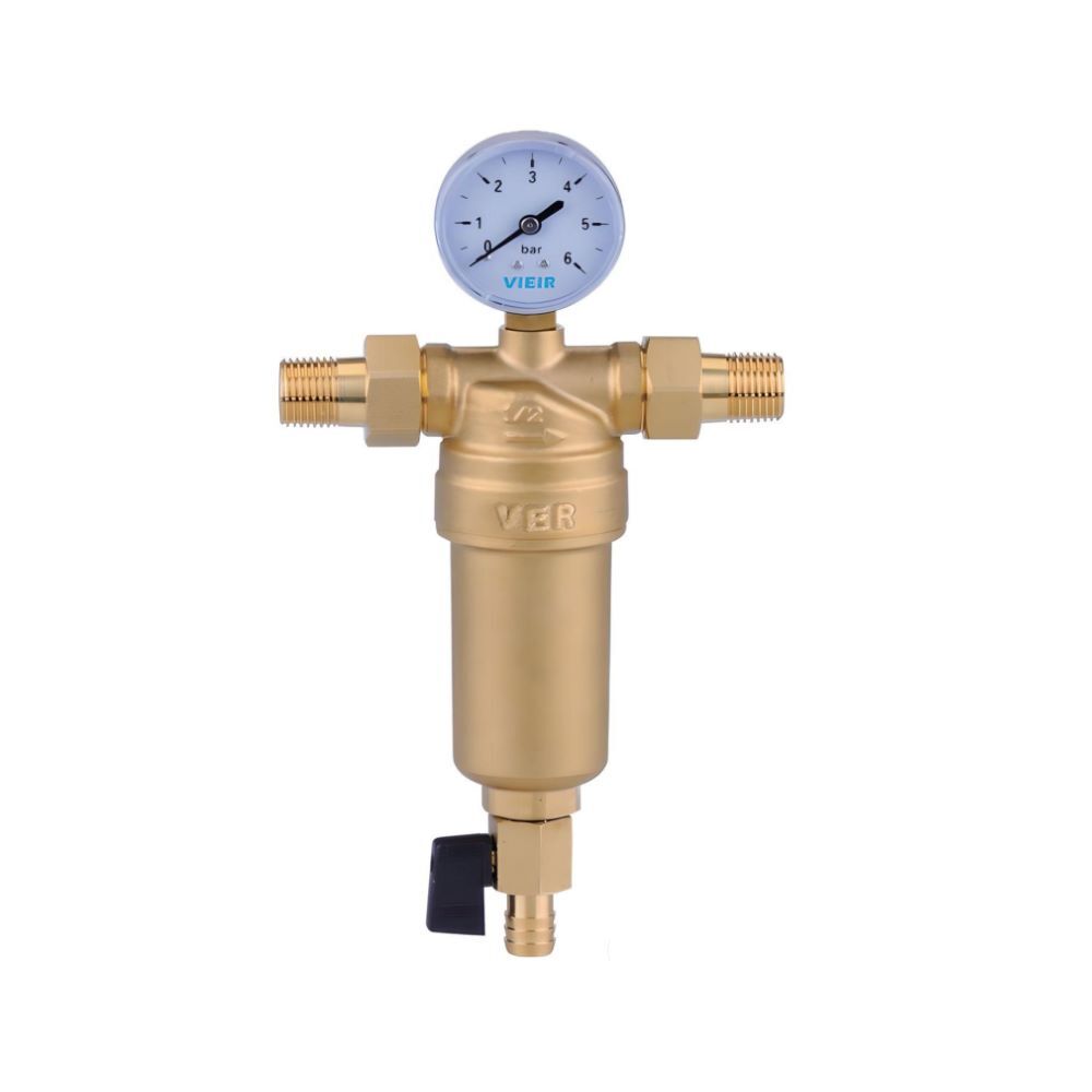 Фильтр самоочищающийся с манометром 1/2" для горячей воды VIEIR