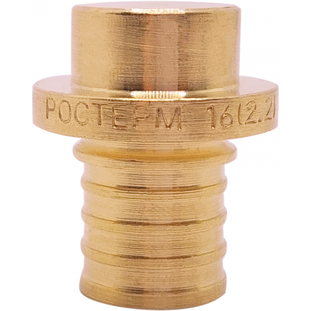 Заглушка РОСТерм 16х2,2 из высококачественной латуни CW617N используется для герметичного перекрытия труб из сшитого полиэтилена или фитинга диаметром 16 мм в системах отопления, горячего и холодного водоснабжении.