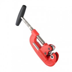 Труборез VTi.701 предназначен для быстрой резки труб из обычной и нержавеющей стали диаметром от 10 до 42 мм. Конструкция резака обеспечивает оптимальную передачу усилия на трубу. Материал режущего диска (ролик отрезной для стальных труб) – закаленная высоколегированная сталь. Широкие ролики гарантируют надежный ход диска по трубе. Используя резак для стальных труб VTi.701, можно непосредственно после резки приступать к нарезанию резьбы, поскольку грат не образуется.