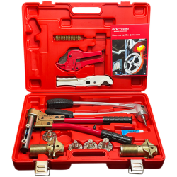 Комплект инструментов для PEX-труб с системой аксиальных фитингов ROIM16-32 от РОСТерм предназначен для монтажа труб из сшитого полиэтилена РЕХ. Подходит для труб диаметром: 16, 20, 25 и 32 мм. Упакован в прочный пластиковый кейс, вес изделия составляет 7,8 кг.