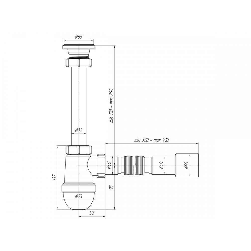 • ✓  Сифон подходит для большинства стандартных раковин, что облегчает выбор и установку.