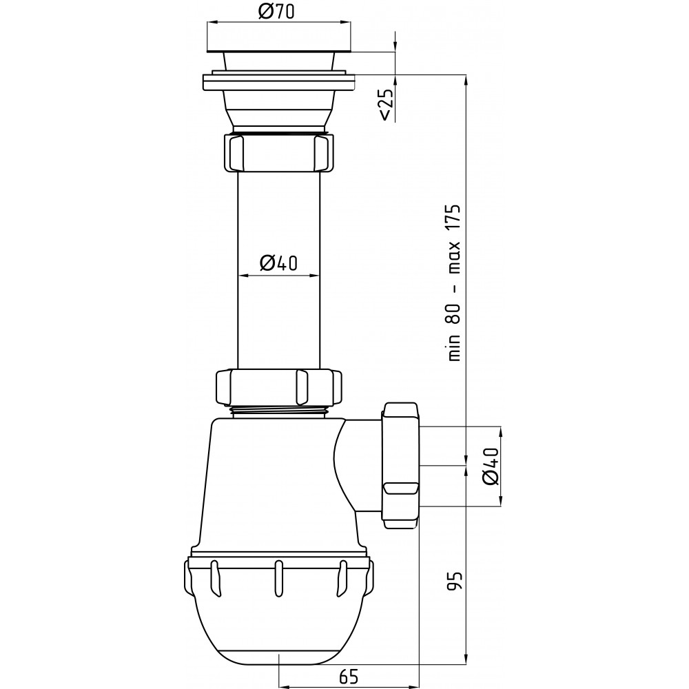 Сифон для кухонных моек с диаметром сливного отверстия 50мм, бутылочного типа с увеличенным корпусом. С разборным выпуском и нержавеющей решеткой. Выход для подключения к канализации 40мм.