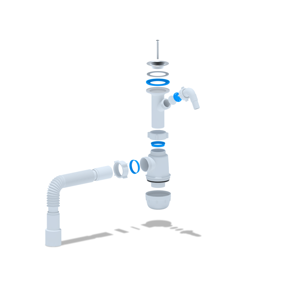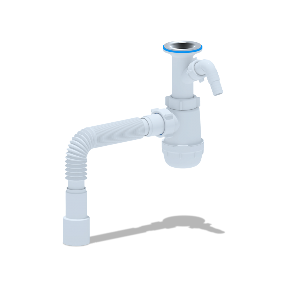 - ✓ Гибкая труба 40×40/50 мм облегчает установку сифона даже в труднодоступных местах и позволяет адаптировать конструкцию под особенности монтажа.