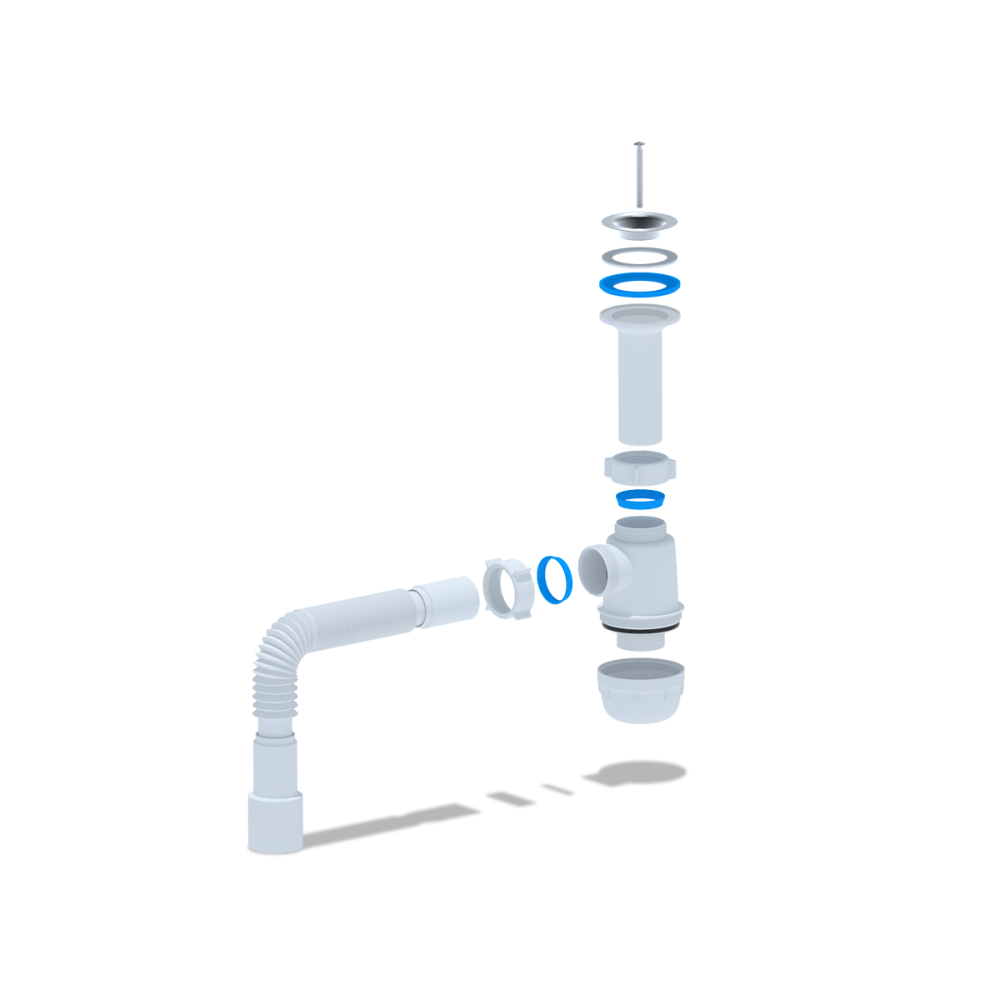 • ✓  Гибкая труба позволяет легко адаптировать сифон под особенности монтажа и обеспечивает надёжное соединение.
