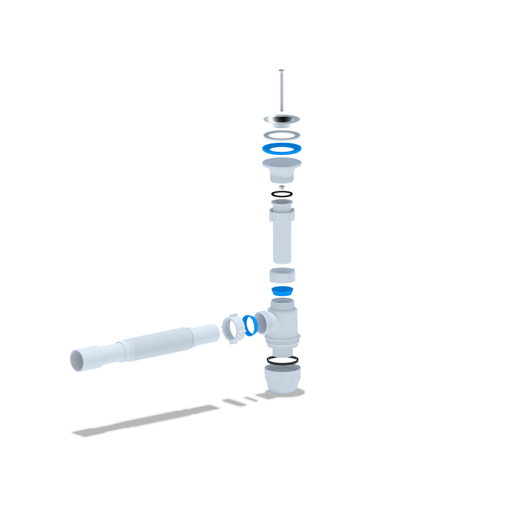 • ✓  Компактная конструкция позволяет устанавливать сифон даже в условиях ограниченного пространства под раковиной, что особенно актуально для небольших ванных комнат и кухонь.