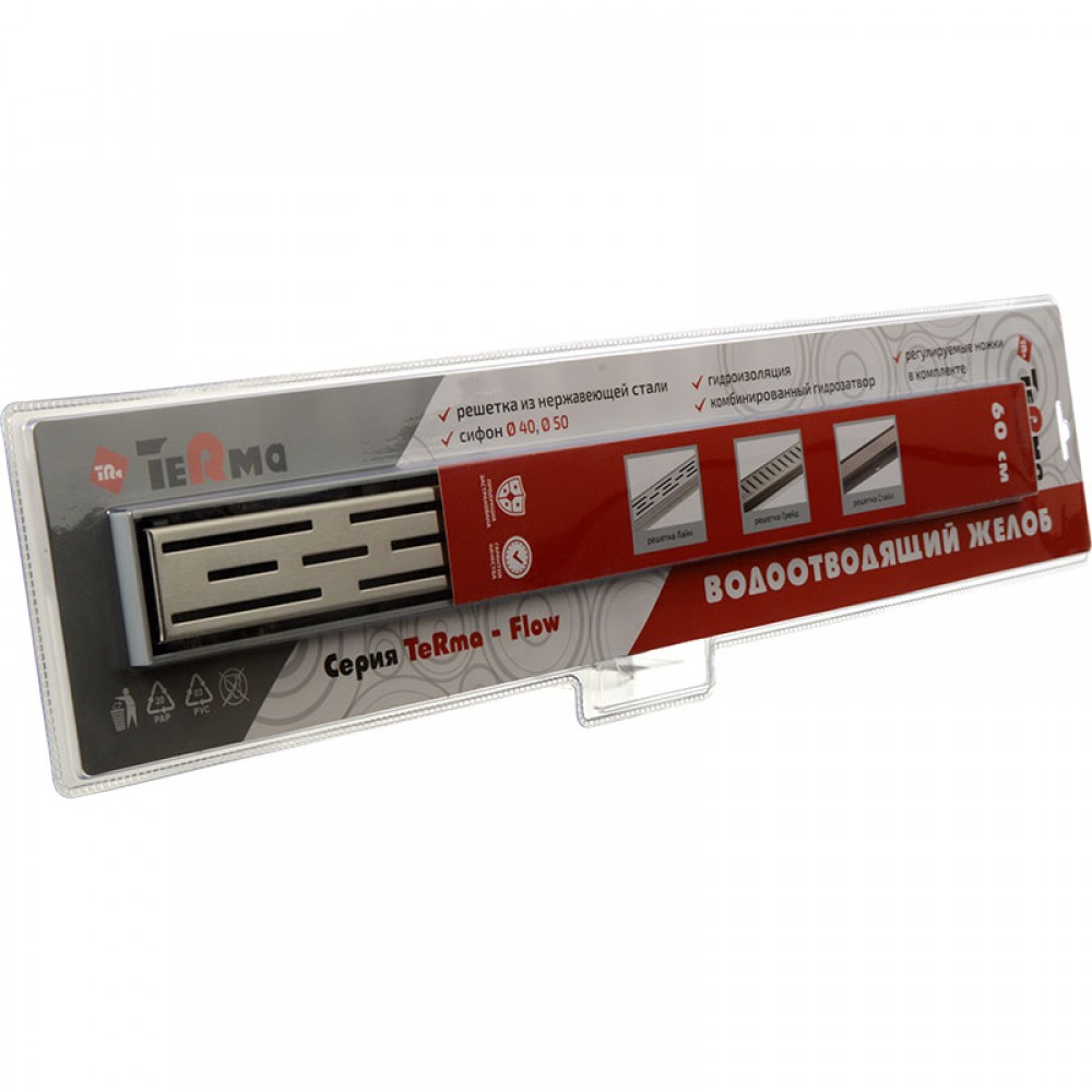 Водоотводящий желоб TeRma Flow 60*600мм, решетка Лайн, применяется для построения безбарьерных душевых и монтируется в стяжку.