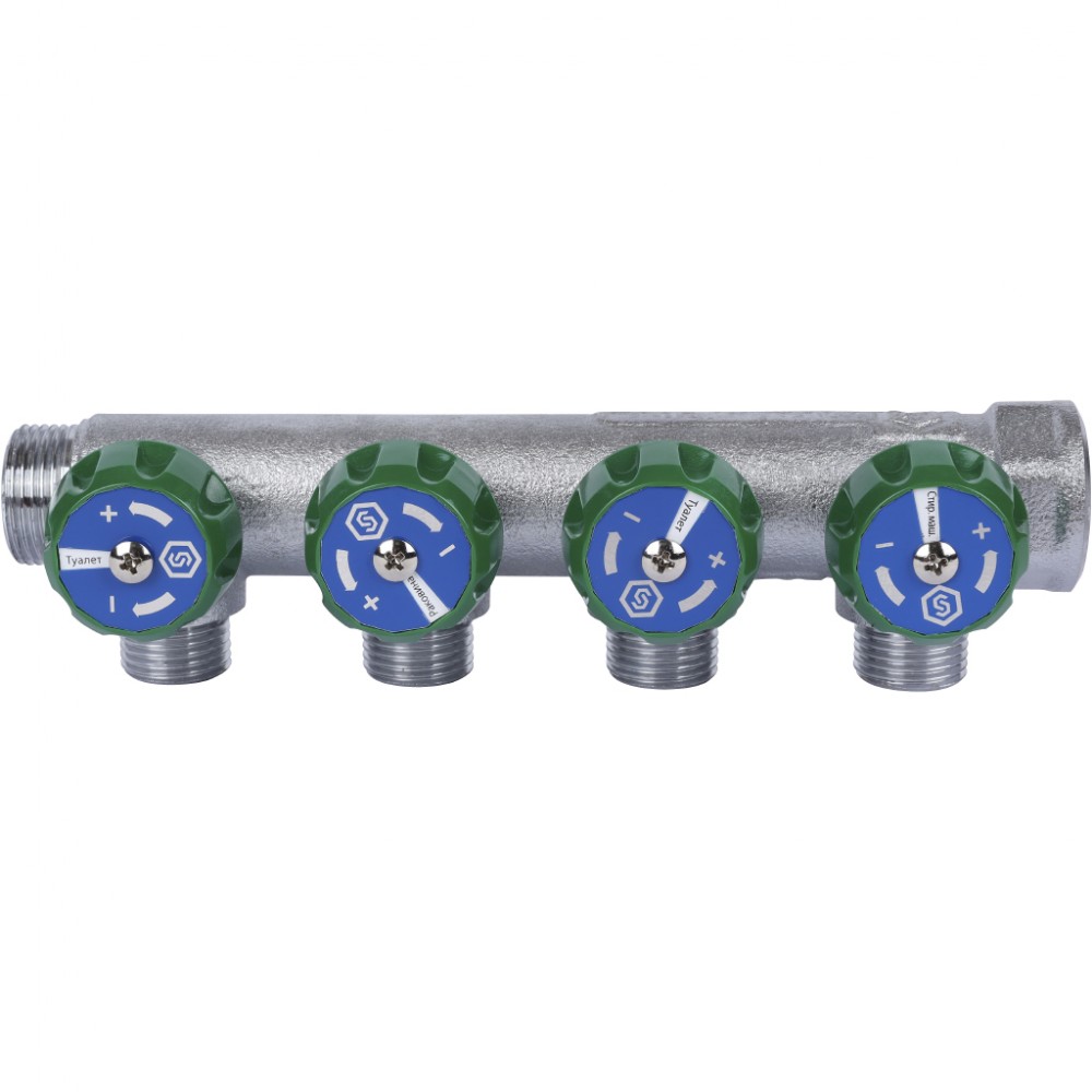 Коллектор регулирующий хром., 3/4", 4 отвода 1/2" STOUT SMB-6850-341204.