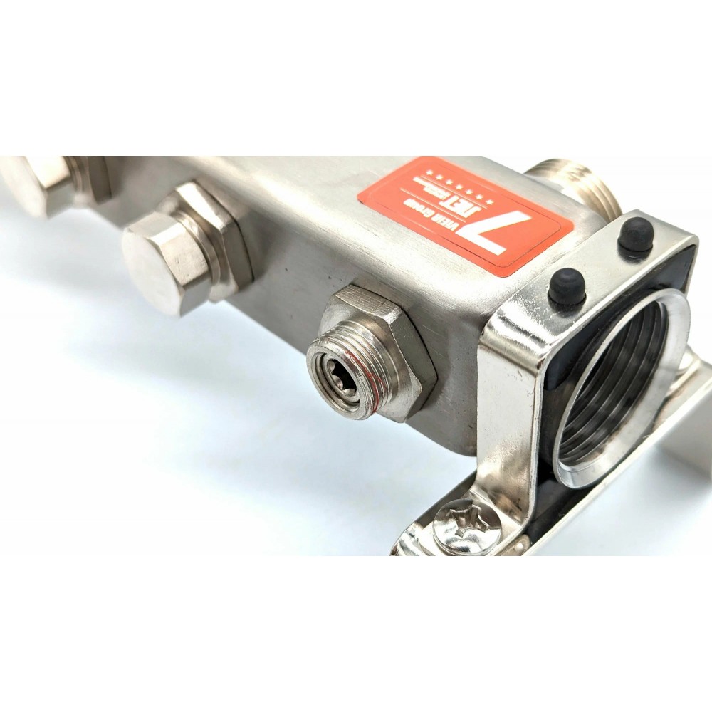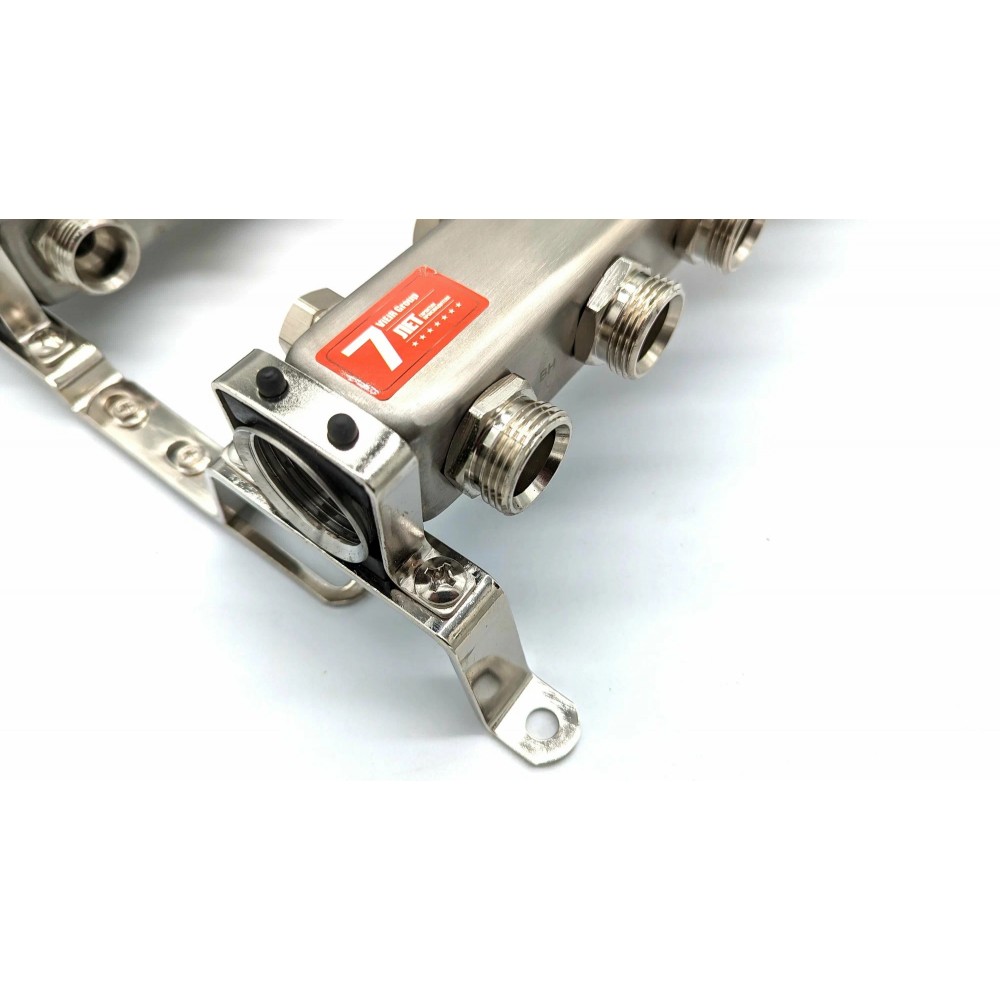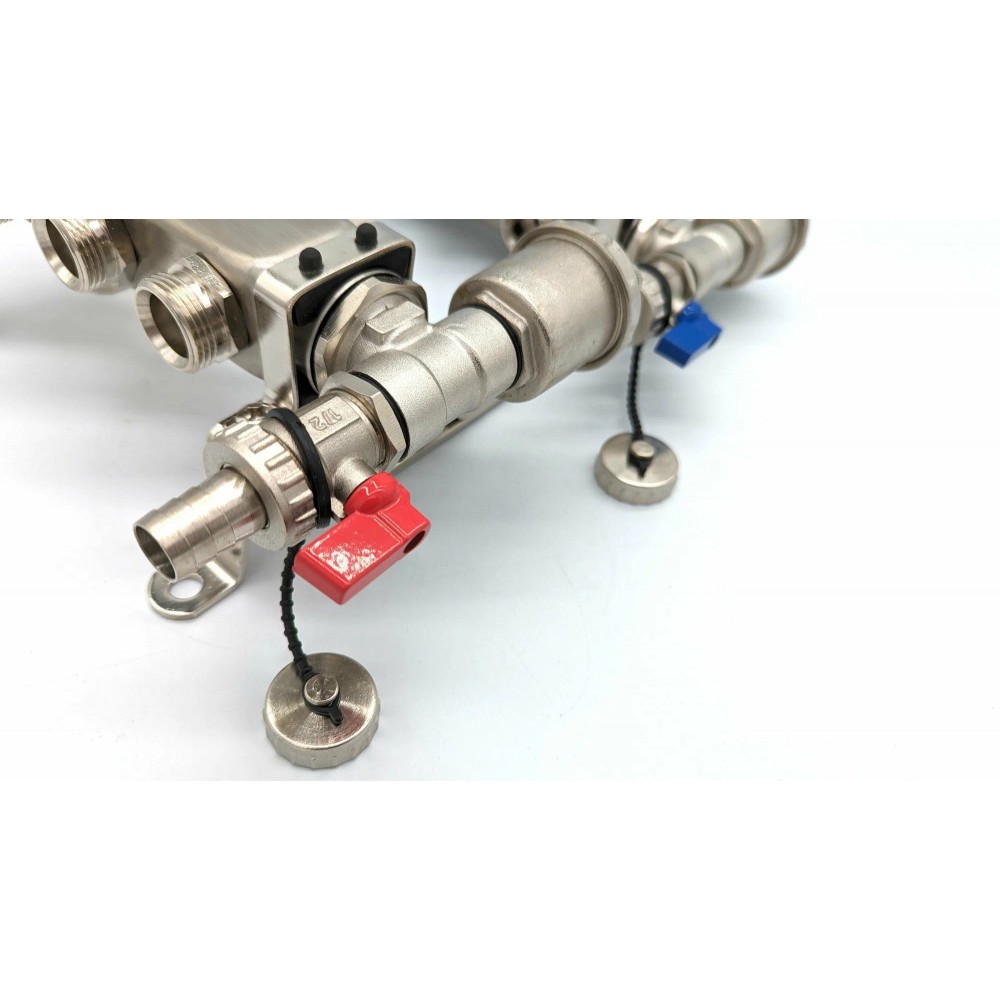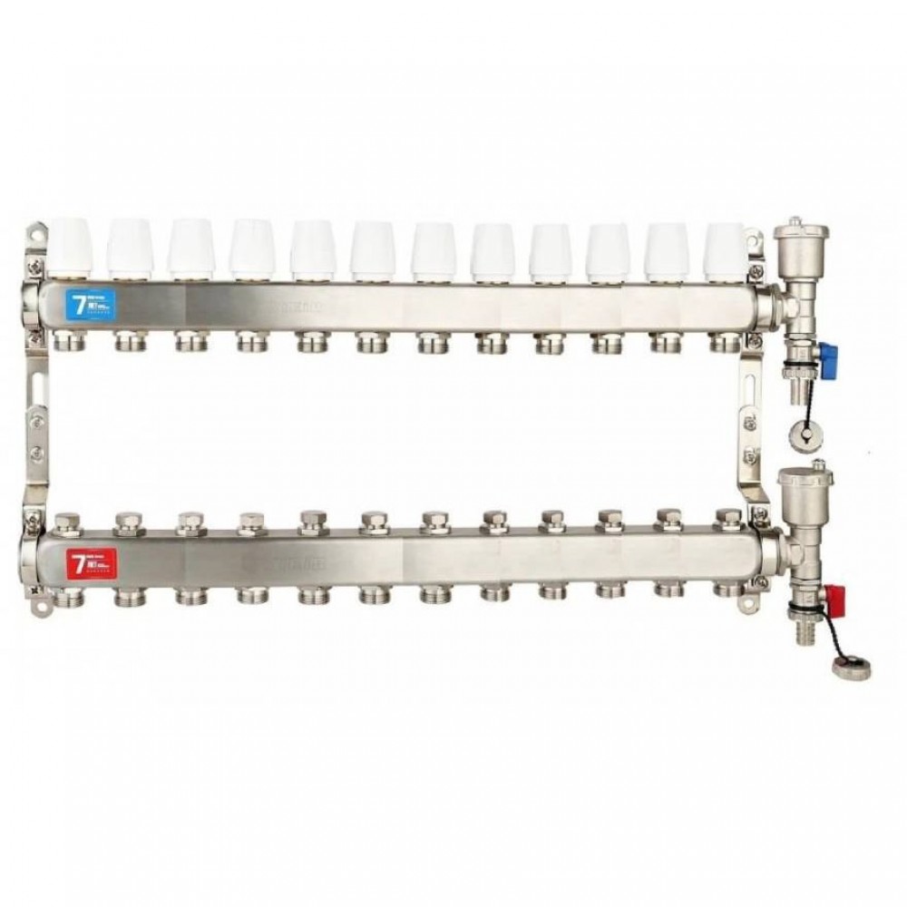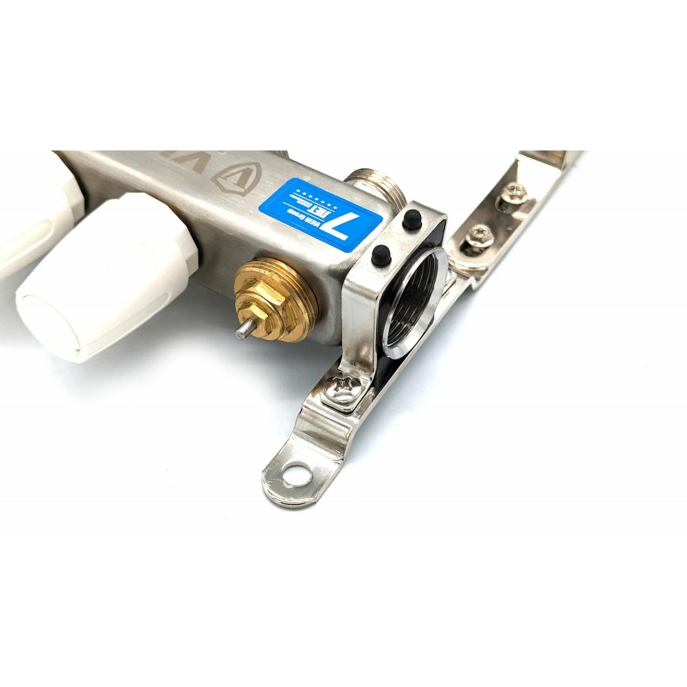 • ✓  Два коллектора 1" из нержавеющей стали AISI 304 с двенадцатью выходами под евроконус 3/4" (НР) для подключения большого числа контуров.
