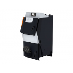 загрузка топлива через наклонную топочную дверцу, закрывающуюся на замок;