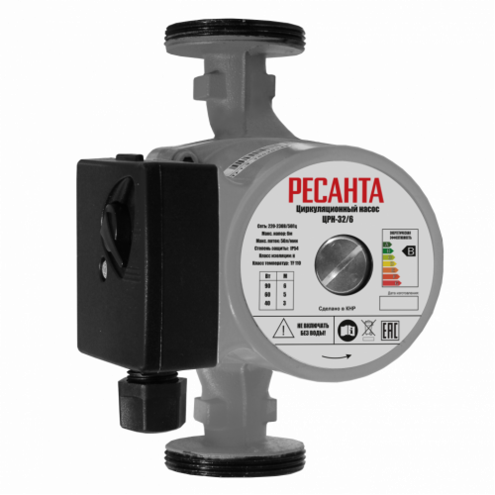 Циркуляционный насос Ресанта ЦРН-32/6 с трехступенчатой мощностью 40/60/90 Вт, максимальным напором до 6 м и потоком до 50 л/мин предназначен для циркуляции теплоносителя в замкнутых системах отопления.