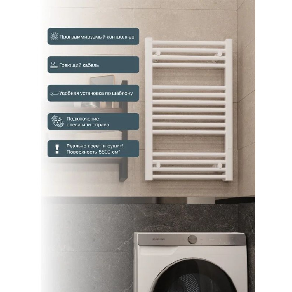 Полотенцесушитель электрический "RIFAR D-LINE" DL-080-50-W, цвет "Белый", мощность 160 Вт