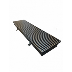 Конвектор оснащен поперечной сворачивающейся решеткой из анодированного алюминия U-образного профиля, собранного на основах из ПВД.