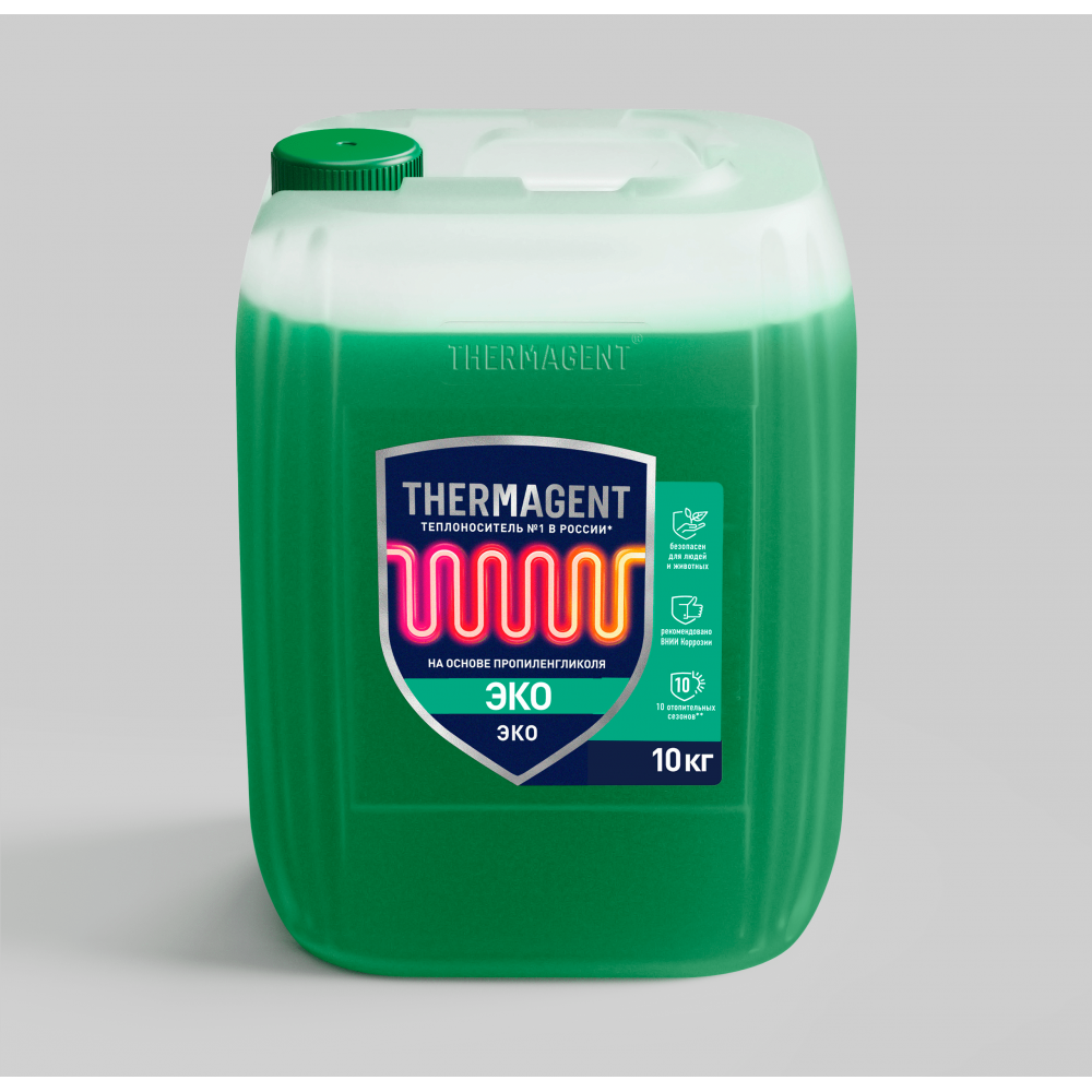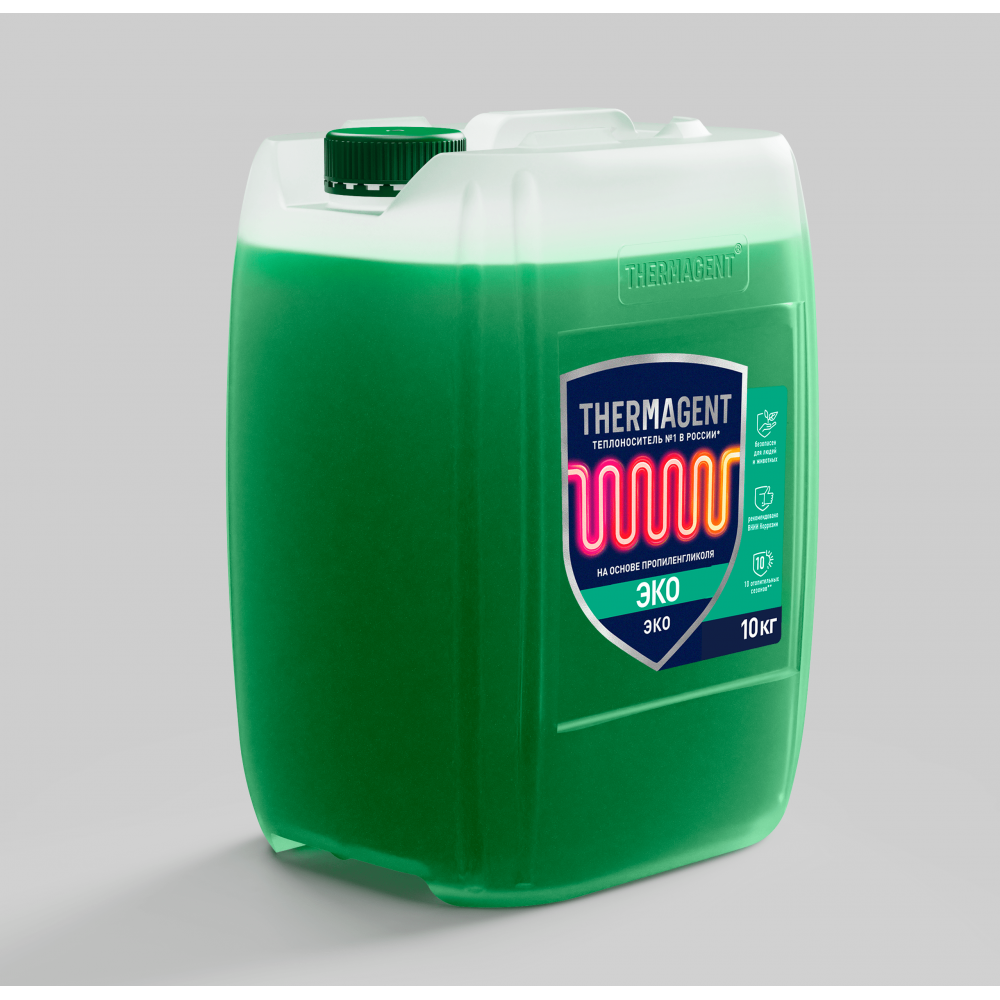 (602270) «Thermagent -30 C ЭКО» отлично подойдёт для использования в загородных домах, он безвреден для людей и животных. «THERMAGENT-30 ºС ЭКО» выпускается на основе пропиленгликоля высшего сорта, с применением новейшей технологии «Organic Acid Technology».