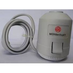 Привод для автоматического управления радиаторным или коллекторным термостатическим клапаном систем водяных теплых полов и охлаждения зданий по управляющему сигналу от комнатного термостата или контроллера. Действие основано на расширении жидкости (толуола) в сильфоне при протекании электрического тока через встроенный нагревательный элемент. Нормально закрытый. Напряжение питания – 220 В (50 Гц). Присоединение сервопривода к клапану – через переходник (в комплекте). Размер М30×1,5, 220 В, 2 контакта.
