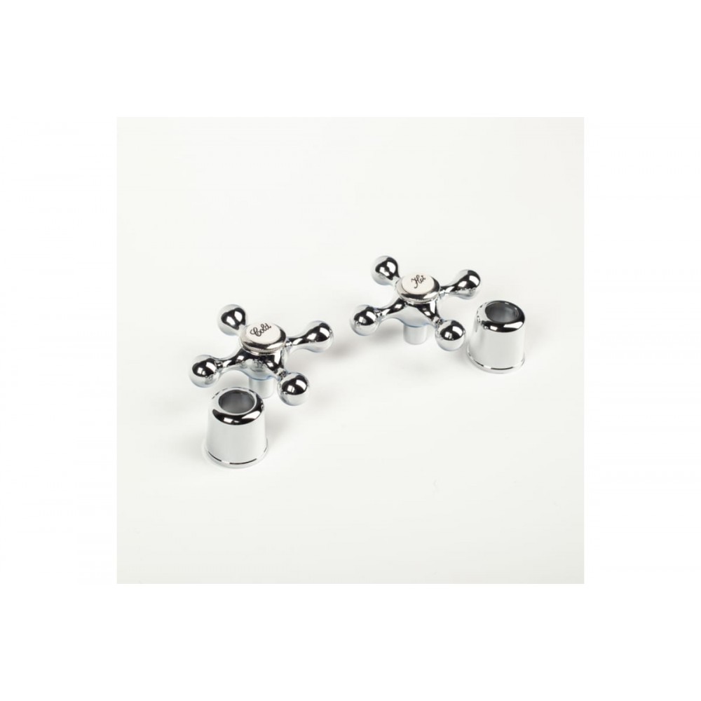 Универсальные сменные ручки для двухзахватного смесителя классической крестообразной формы. Размер штока кран-буксы – 8х20. Комплект из 2 штук.