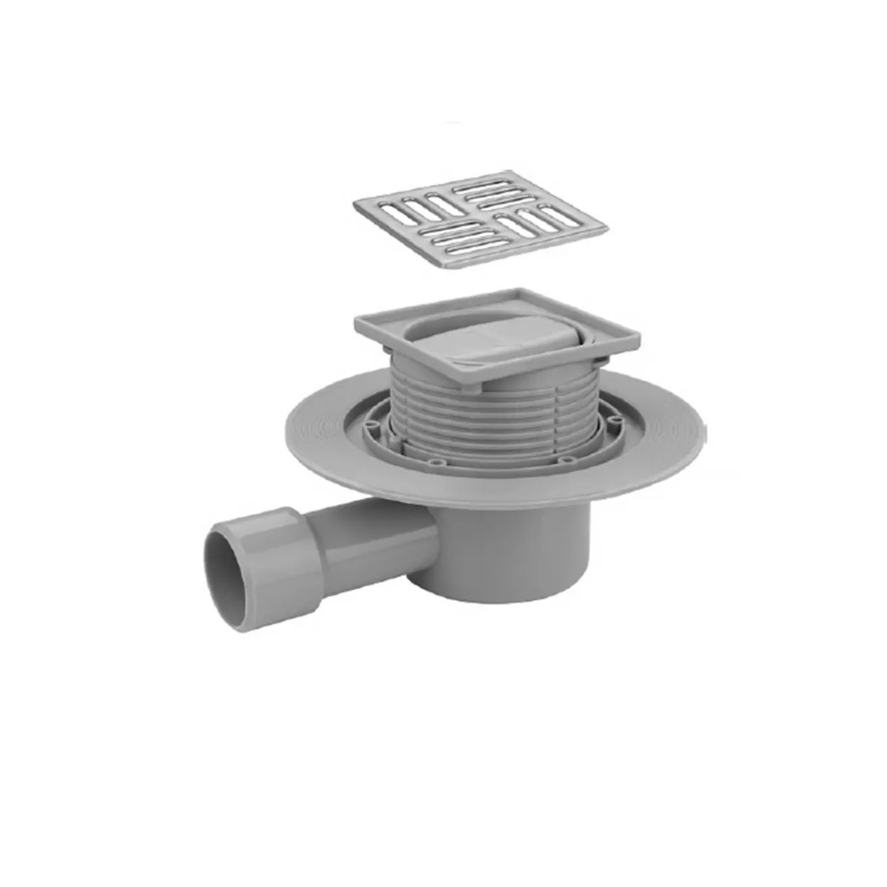 Душевой трап горизонтальный 50мм с сухим затвором решетка 100x100мм VIEIR