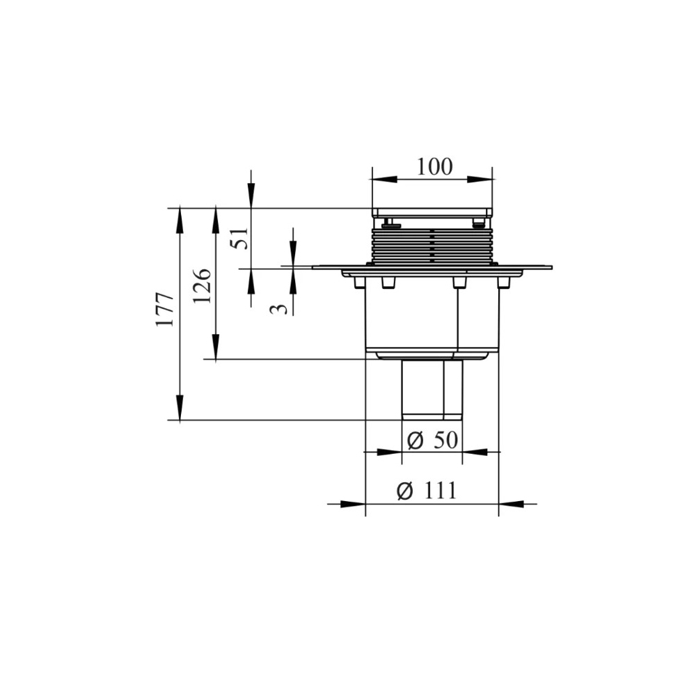 • ✓  Компактный размер 100×100 мм облегчает размещение трапа в стеснённых условиях и в небольших душевых.