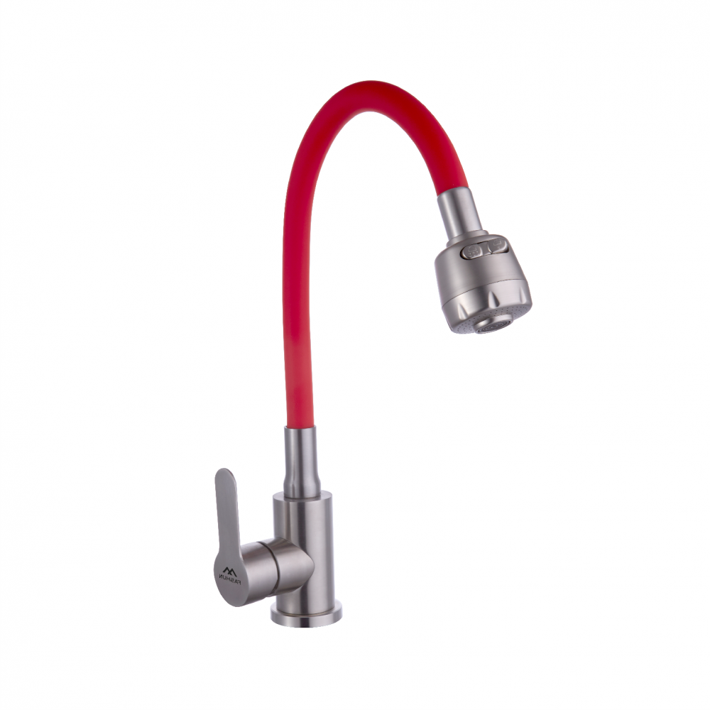 A54101+N7348 Смеситель из нерж.сталь, д/кухни, излив гибкий, аэратор 2 режима, САТИН/КРАСНЫЙ.