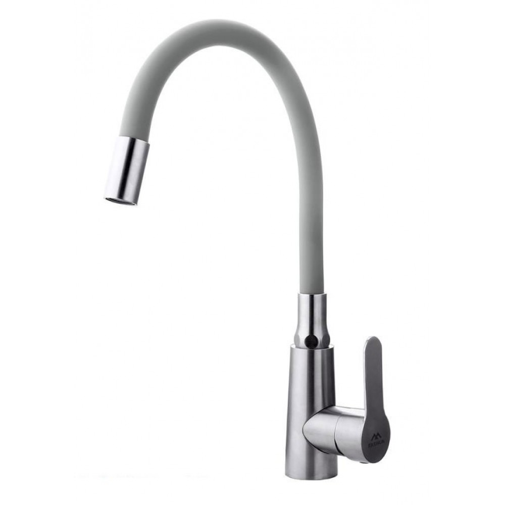A54301-12 Смеситель Fashun нерж. д/кухни, гибкий.излив 190мм, крепление-гайка, СЕРЫЙ/САТИН.