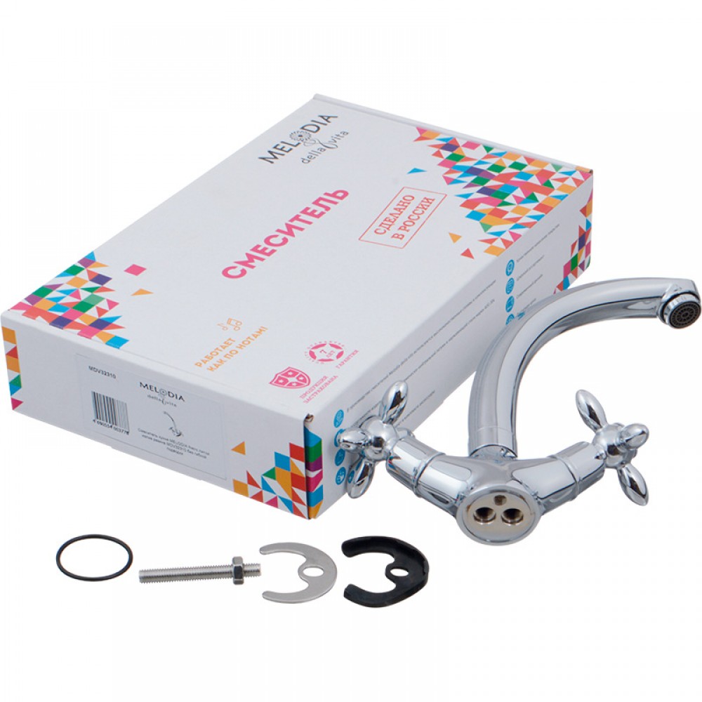 Двухвентильный смеситель для кухни MELODIA Retro MDV32310 отличается прочным литым поворотным изливом и крестообразными ручками управления. Классический кухонный кран создан для раковин и моек, где важен традиционный дизайн и высокая надежность металлических элементов.
