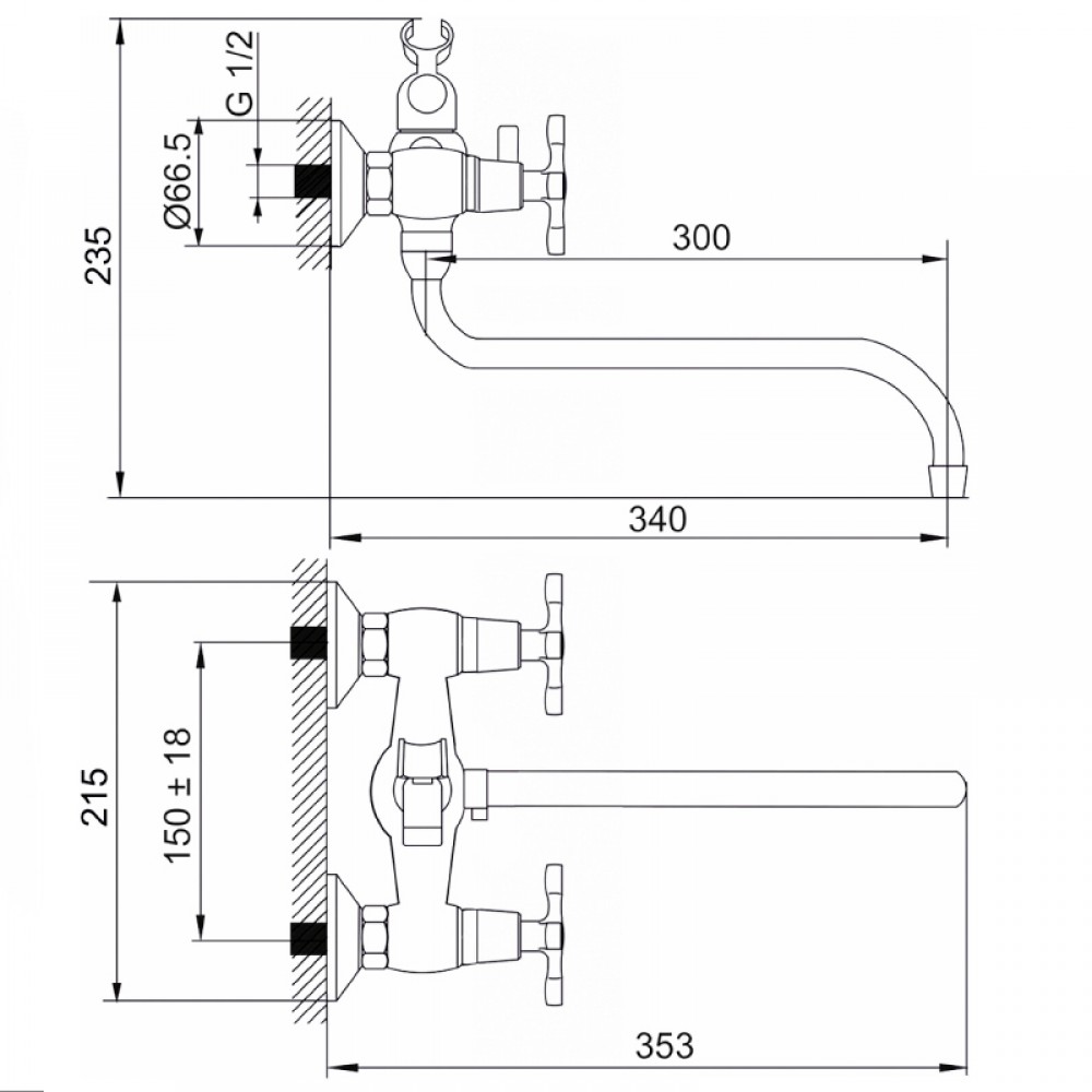 - ✓ Тип управления: двухвентильный (маховики-кресты)