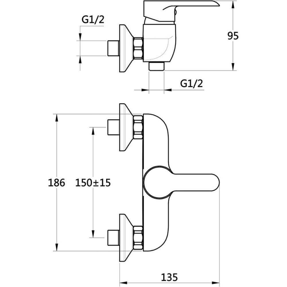 В комплект оборудования входит квадратная однорежимная душевая лейка размером 90х90 мм, которая идеально дополняет строгий стиль смесителя. Установка на стену выполняется с помощью входящих в набор эксцентриков и декоративных чашек.