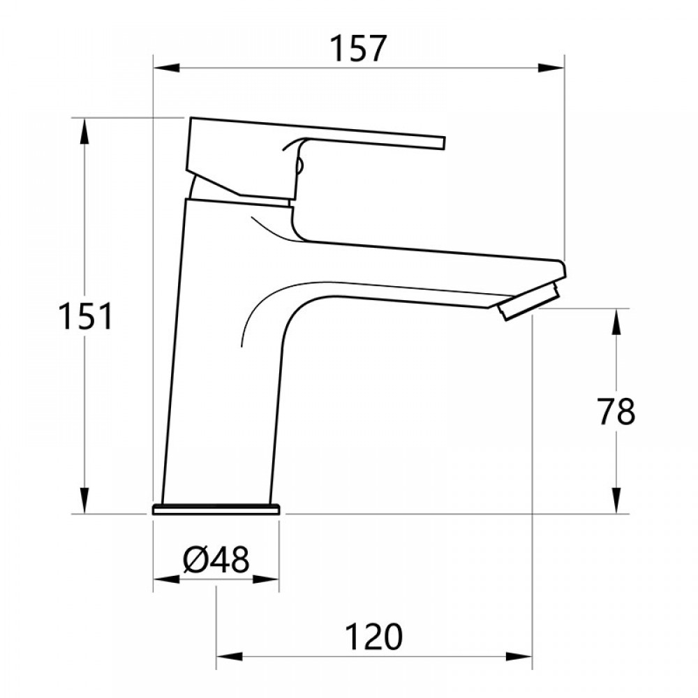 Корпус изделия отлит из латуни, а ручка выполнена из цинкового сплава. В носик интегрирован качественный поворотный аэратор бренда Neoperl, формирующий ровную струю без сильных брызг. Высокий жесткий излив обеспечивает достаточно пространства для мытья рук и умывания.