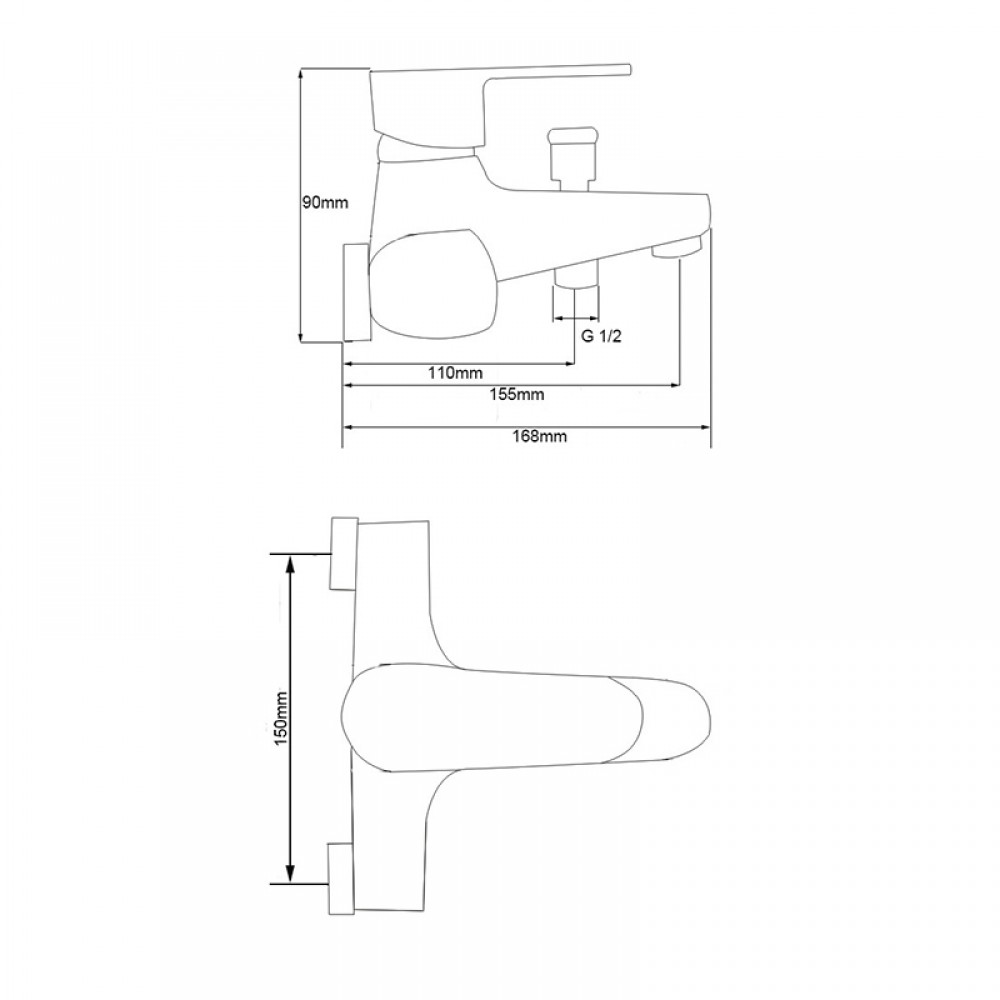 Оборудование имеет классическое настенное крепление с межосевым расстоянием 150 мм. Поверхность прибора покрыта гладким слоем хрома, который легко очищается от мыльных разводов и известкового налета. В набор также включен ручной душ.
