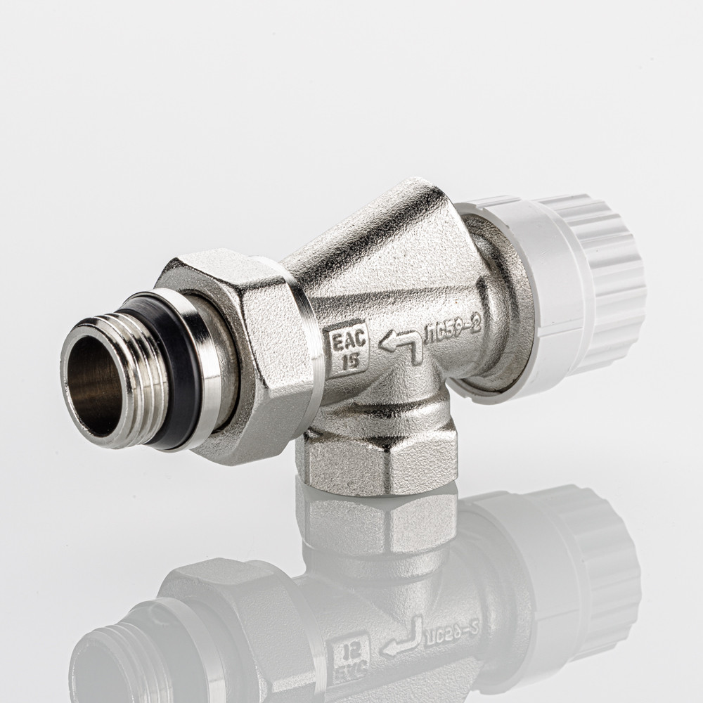 (VT.179.NRC) Радиаторный осевой клапан предназначен для управления теплоотдачей отопительных приборов путём регулирования расхода теплоносителя. Для автоматического управления на клапан могут быть установлены термостатические головки или сервоприводы с присоединительной резьбой М30х1,5. В клапане реализована функция предварительной настройки, которая позволяет задавать значения пропускной способности для гидравлической увязки отопительных приборов.