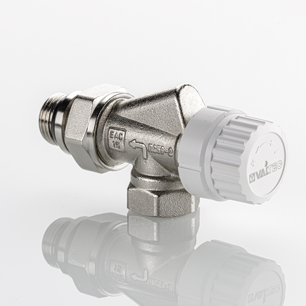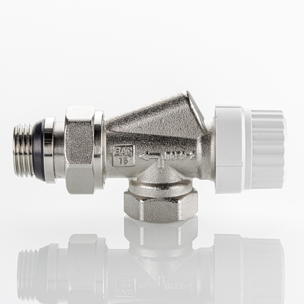 Осевое исполнение позволяет всегда располагать термостатический элемент горизонтально вдоль радиатора, независимо от того куда направлены подводящие трубы (в пол или в стену). Такое положение обеспечивает более точное поддержание температуры, поскольку термочувствительный элемент в меньшей степени подвержен воздействию тепловых потоков от отопительного прибора.