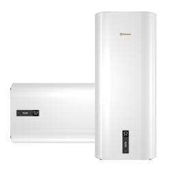 - ✓ Плоский корпус и удобный монтаж. Благодаря технологии Double Tank – два вытянутых цилиндра соединенных между собой создают плоский и компактный корпус глубиной 250 мм. Разместить такой водонагреватель можно в любом помещении или спрятать в нишу. Также водонагреватель имеет возможность универсального размещения: как вертикального, так и горизонтального, что делает его еще более удобным и компактным.